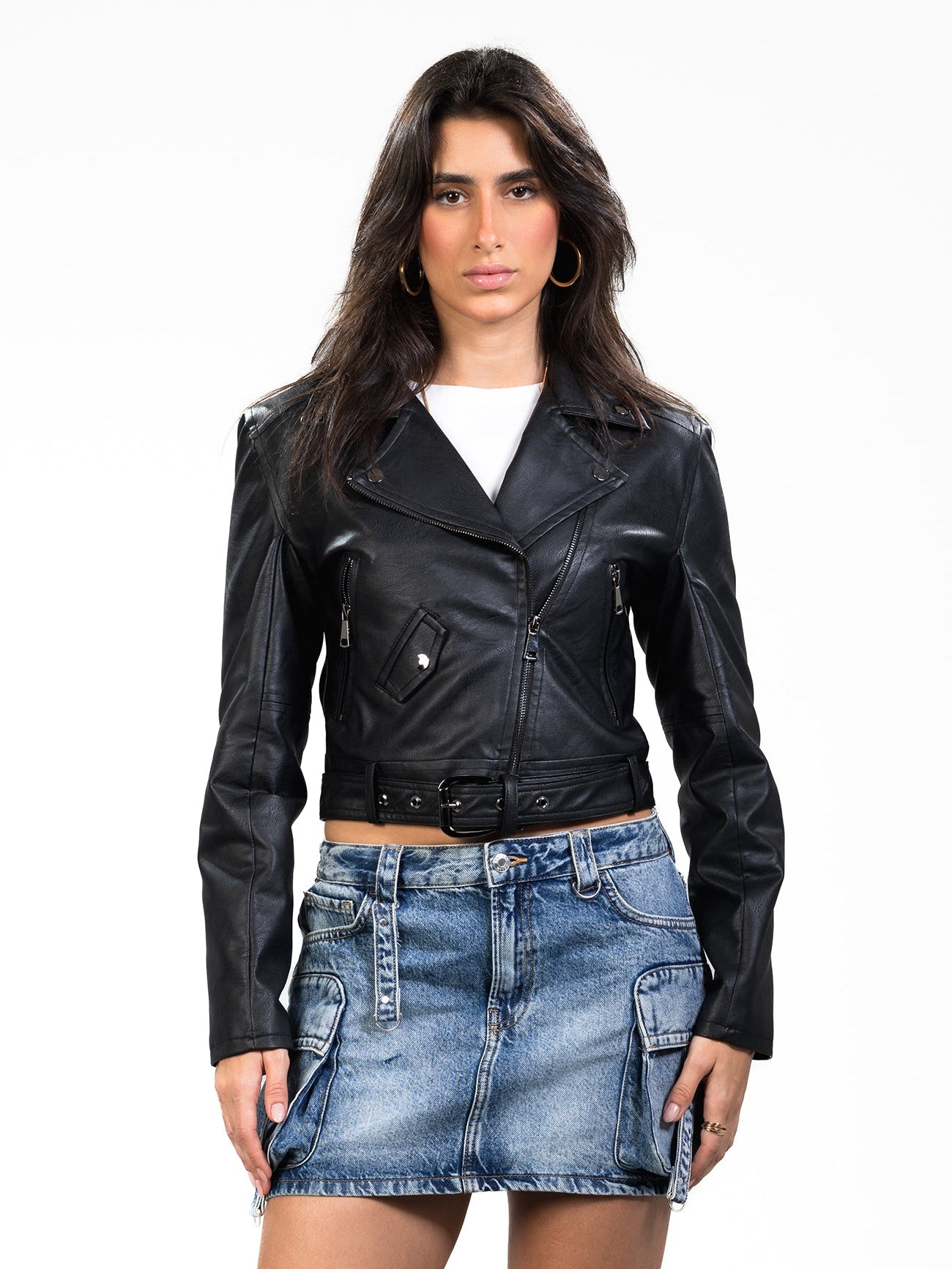 the perfect blend of cool and classic. The cropped length gives you that modern edge while the soft leather feels amazing against your skin. Layer it over your favorite dress, tee, or sweater for instant style points. Whether you're heading out for coffee or a night with friends, this jacket has your back. It's the kind of piece that makes getting dressed fun and effortless every single time.