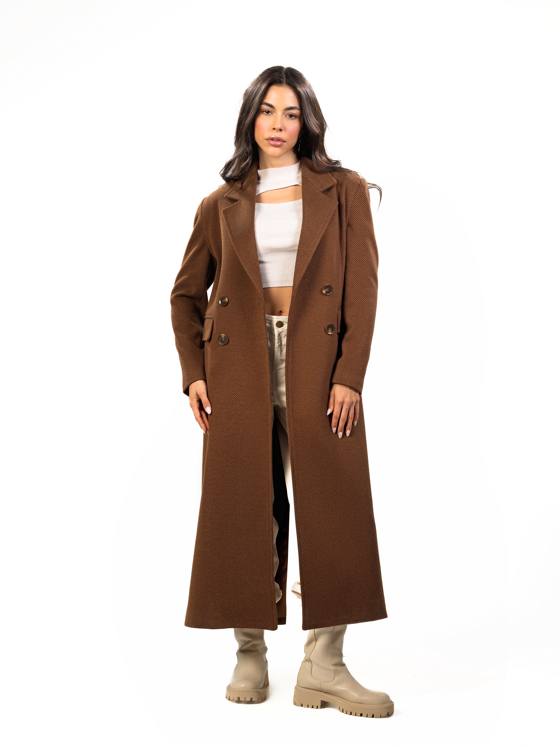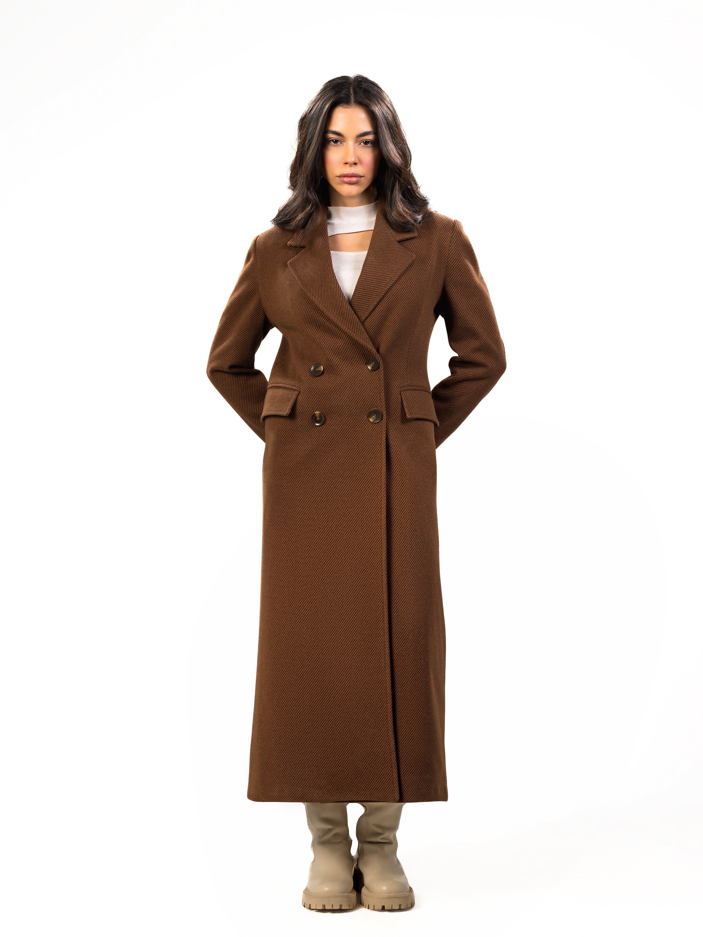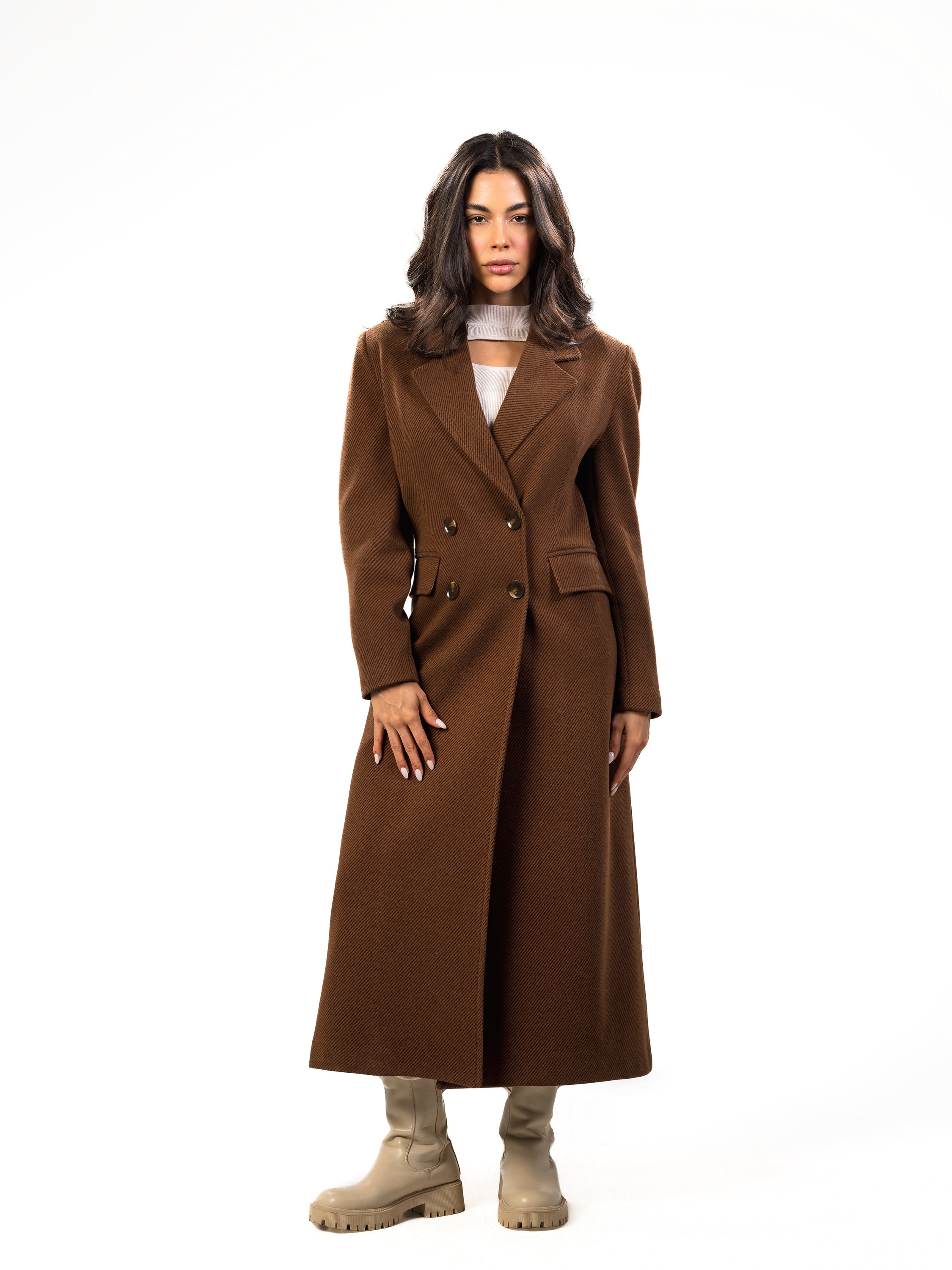 Timeless long wool coat designed for effortless sophistication.